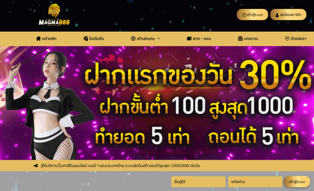 ทางเข้าเล่น MAGMA888 คาสิโนเว็บตรงสุดฮอตนั้น ชื่อนี้ไม่ได้มาง่ายๆ เนื่องจากเว็บนั้นมีความทันสมัยสะสวย แน่นอนว่าผู้เล่นทุกท่านนั้นที่เข้ามาแวะชมเว็บไซต์ MAGMA888 ของเรานั้น ส่วนใหญ่จะเป็นผู้เล่นที่เคยเล่นเว็บคาสิโนออนไลน์ต่าง ๆ มาก่อนอย่างแน่นอน แต่แอดมินบอกได้เลยว่าเว็บไซต์ คาสิโนออนไลน์ครบวงจรของนั้น จะเป็นมากกว่าเกมออนไลน์ทั่ว ๆ ไป เนื่องจากทางเรานั้นได้มีโปรโมชั่นพิเศษ มากมายที่จัดขึ้นมาเพื่อเอาใจสายทุนน้อยทั้งหลาย ที่สามารถนำ ที่เรานั้นได้แจกให้ ภายในการทำกิจกรรมต่าง ๆ นั้น นำมาเล่นเกมกับเราได้ทันทีโดยไม่ต้องรีรออะไรทั้งสิ้น ทำให้ผู้เล่นนั้นสามารถทำรายการได้โดยที่ไม่ต้องฝากเงินเข้ามาเลยแม้แต่บาทเดียว และยังสามารถดูโปรโมชั่นต่าง ๆ มากมายกับเว็บไซต์เราได้แบบทุกท่านไม่ว่าจะเป็นสมาชิกเก่าหรือใหม่