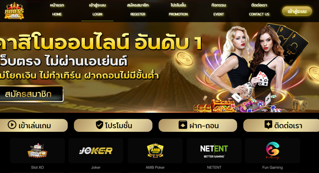 บริการท่านตลอด 24 ชั่วโมง สมัครสามชิกลุ้นกิจกรรมทุกวัน แตกบ่อยได้ เงินไว เว็บตรงไม่ผ่านเอเย่นต์ ลิ้งทางเข้าเดียวสามารถเดิมพันได้ทุกเกม รองรับทุกธนาคารยอดนิยม และ รองรับฝากเงินผ่านระบบ true wallet เว็บพนันออนไลน์ที่เล่นได้ทุกที่ ทุกเวลา ไม่ต้องเสียเวลาเดินทางไปไหนไกลอีกแล้ว เลือกเรา BOOTS88 พร้อมให้บริการทุกท่าน